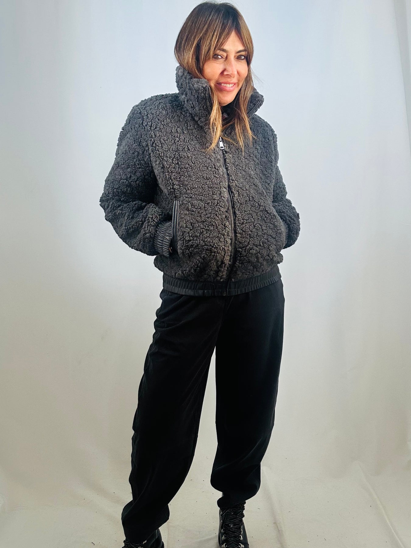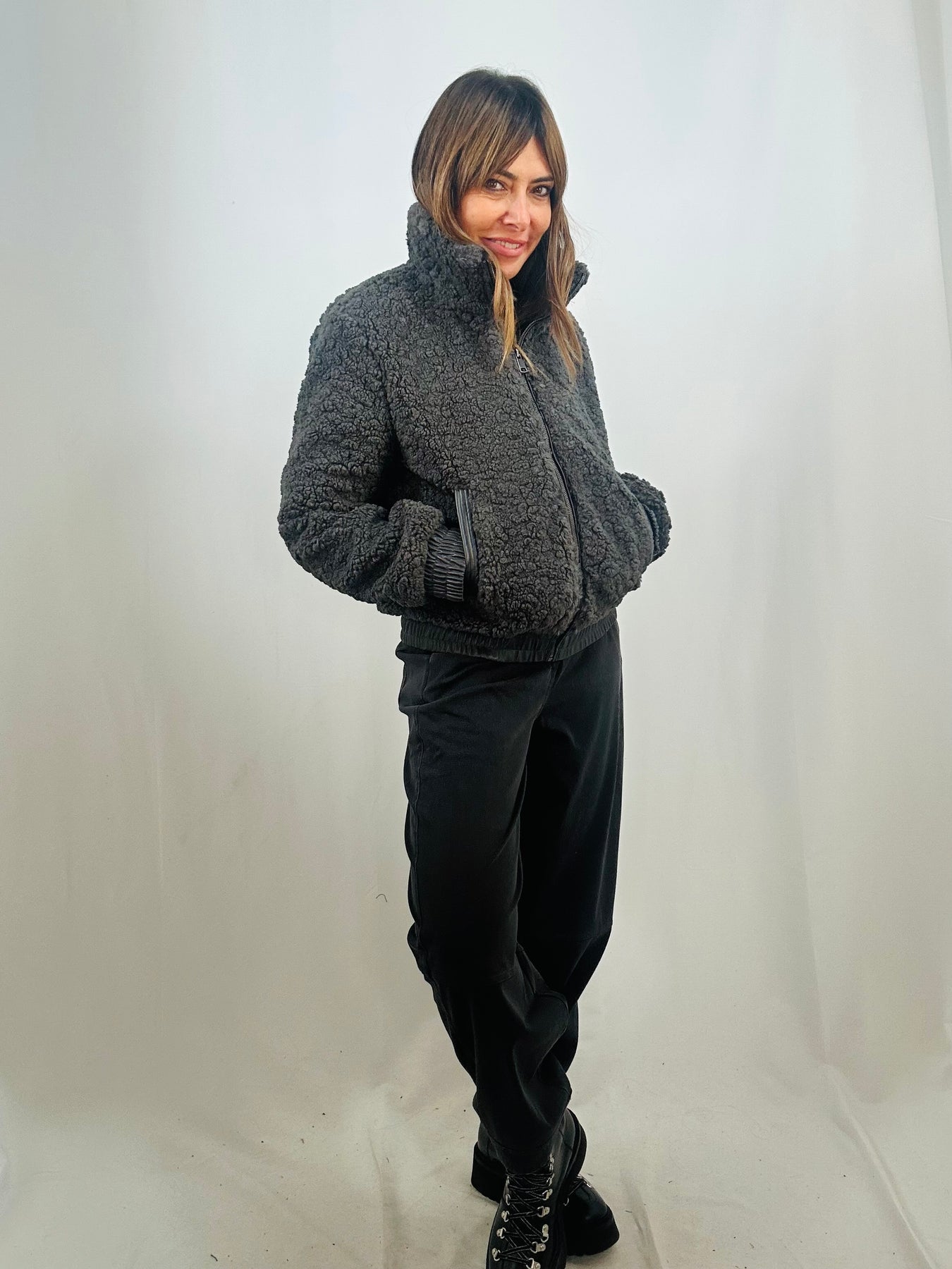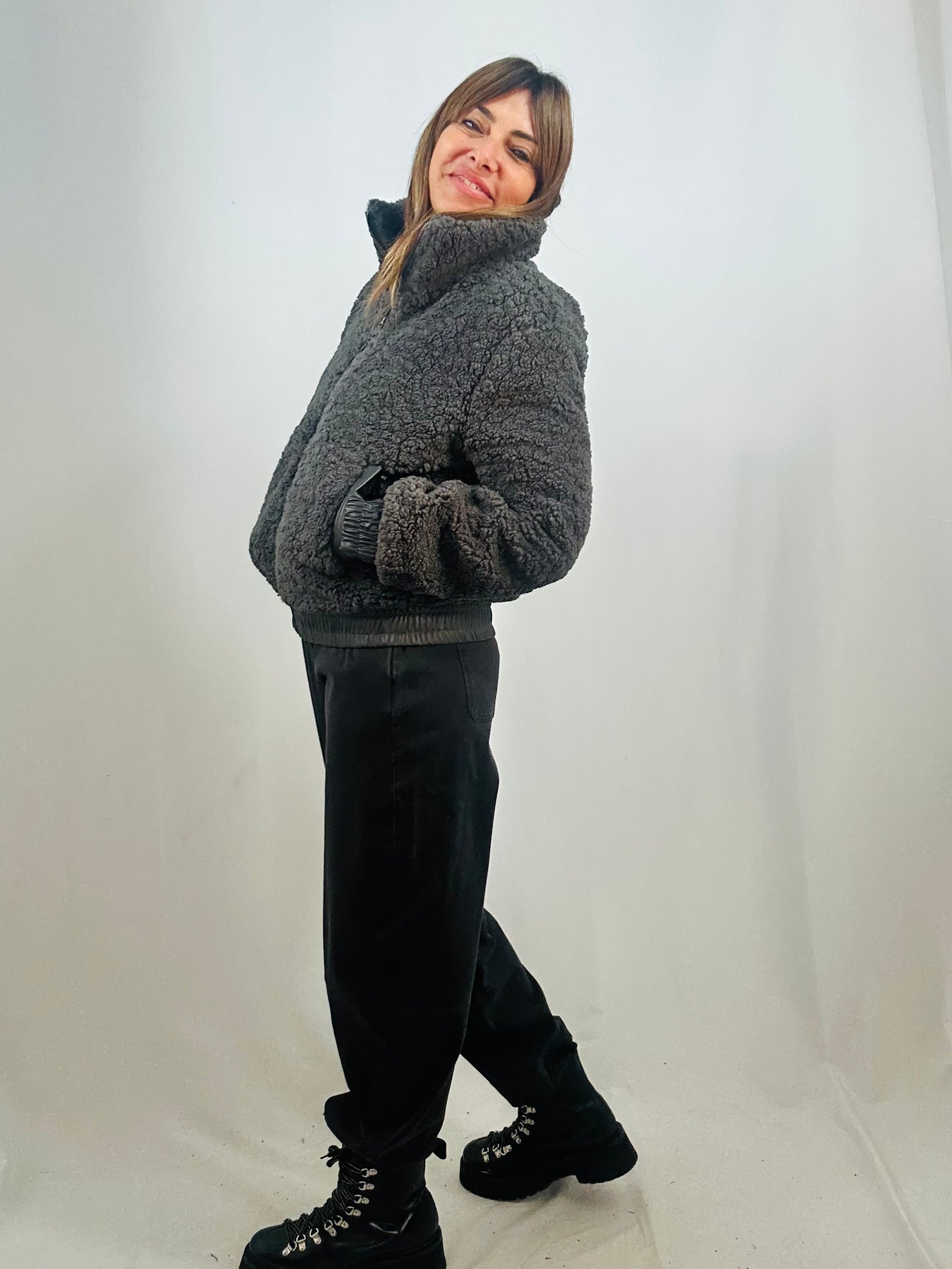 The Keren fleece bomber blends cosy comfort with cool, contemporary style. Made from soft fleece and accented with sleek faux leather trim on the waistband, cuffs, and pockets, it delivers a fresh, on-trend look. The zipped front adds practicality while keeping your outfit effortlessly sharp.