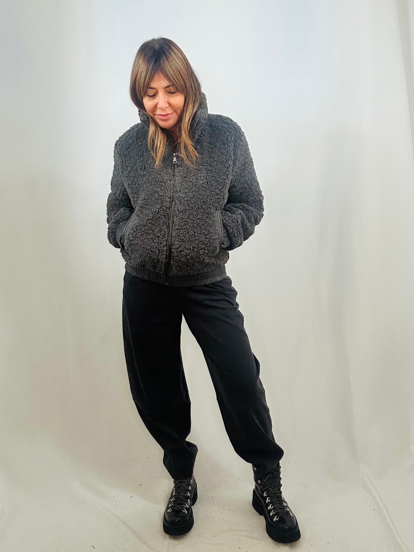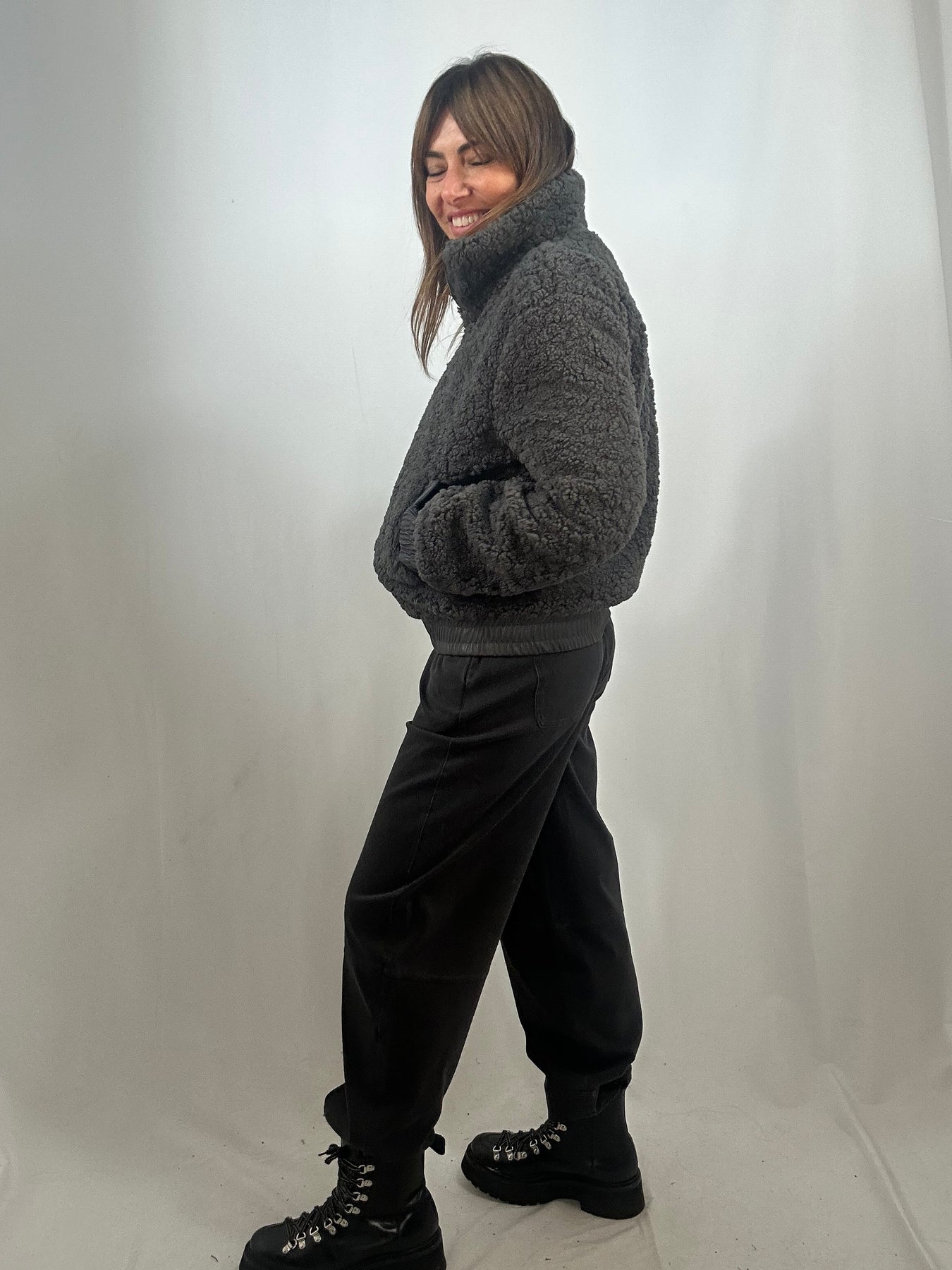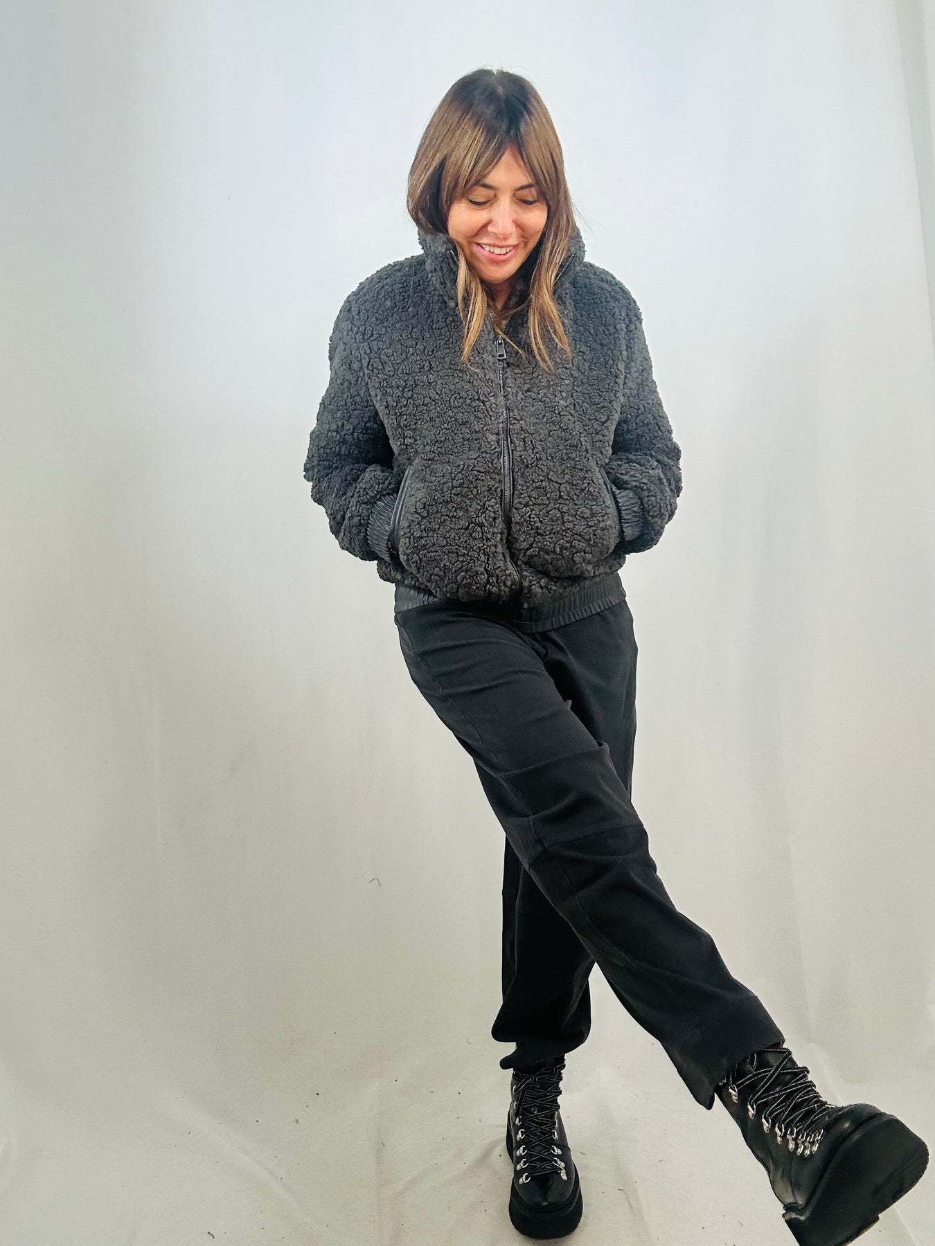 The Keren fleece bomber blends cosy comfort with cool, contemporary style. Made from soft fleece and accented with sleek faux leather trim on the waistband, cuffs, and pockets, it delivers a fresh, on-trend look. The zipped front adds practicality while keeping your outfit effortlessly sharp.