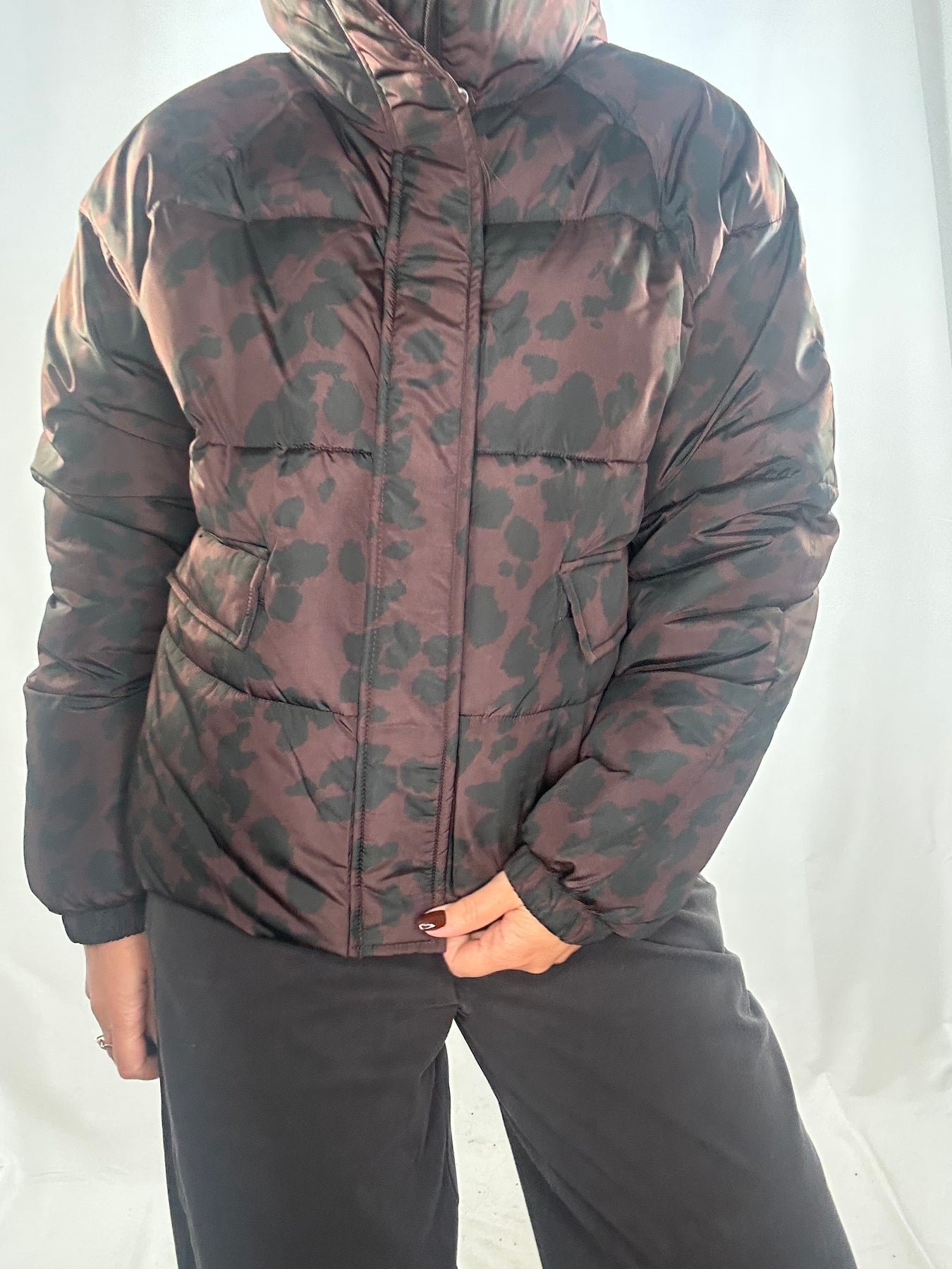 Standard fit, zipped front, pockets, faux leather trim to cuffs, waistband and pockets.