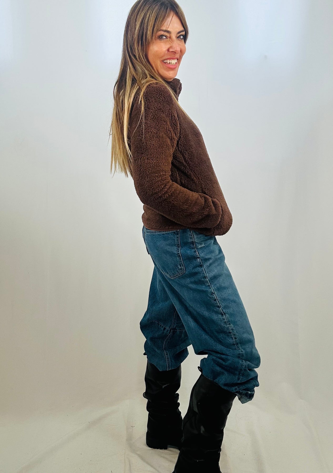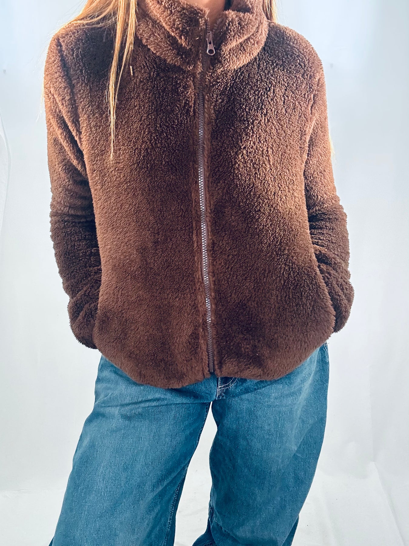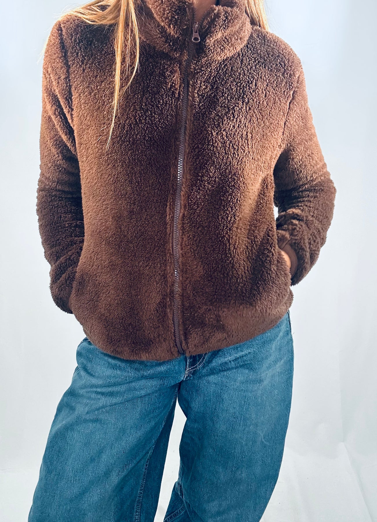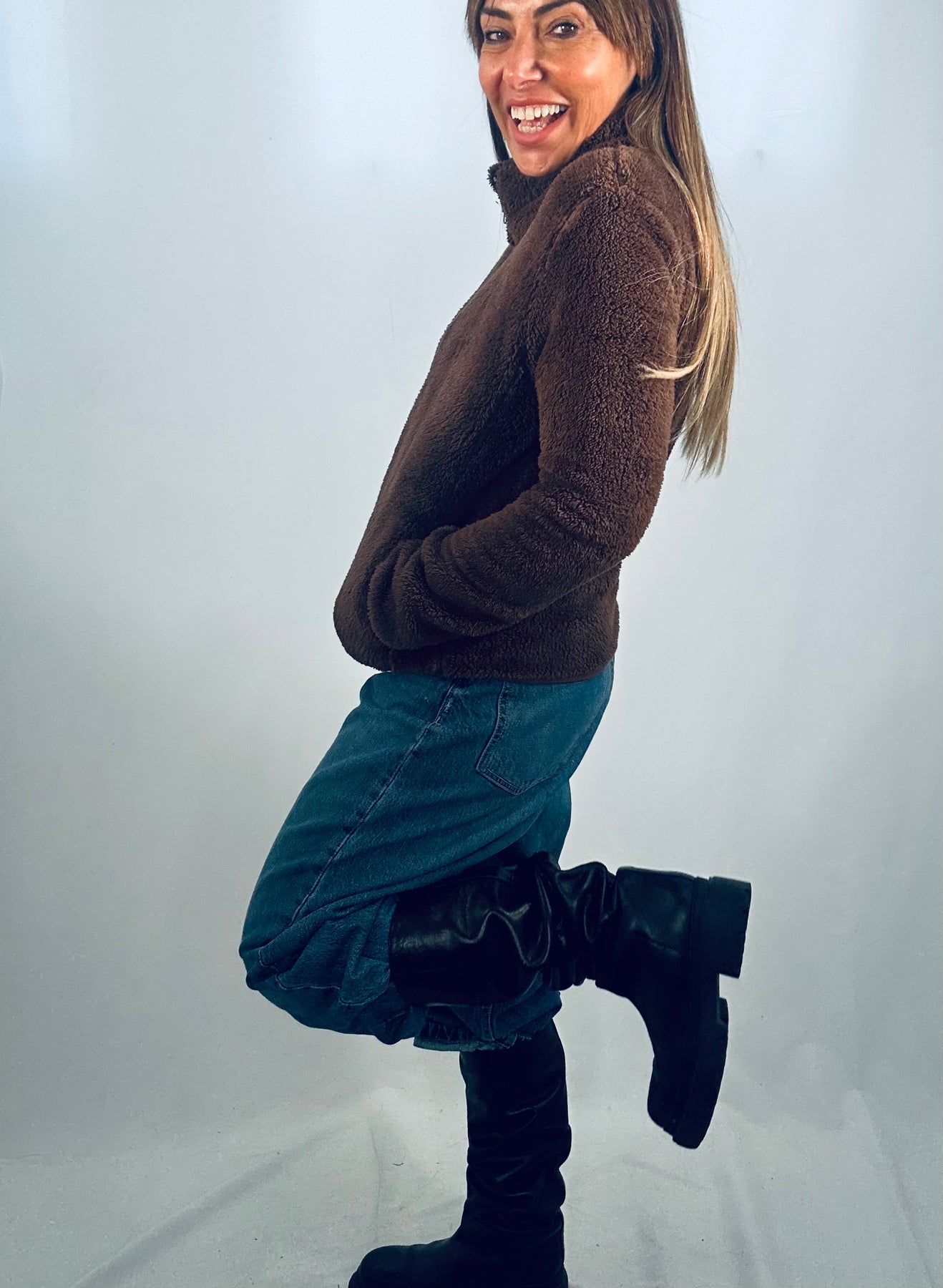 Cozy up in the Rosie Teddy fleece bomber—soft, cuddly, and perfect for cooler days. Featuring a high collar, zipped front, and handy pockets, it’s your ultimate easy layer. Finished in this season’s chocolate shade, it’s the playful pick that’s ready to brighten up chilly moments.