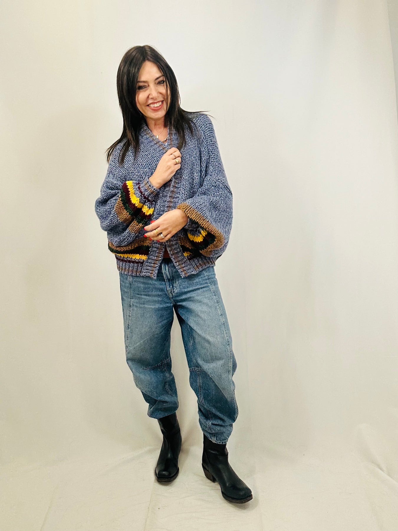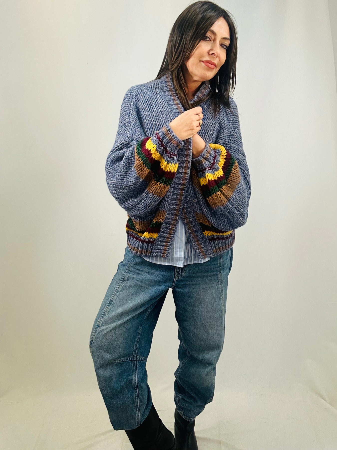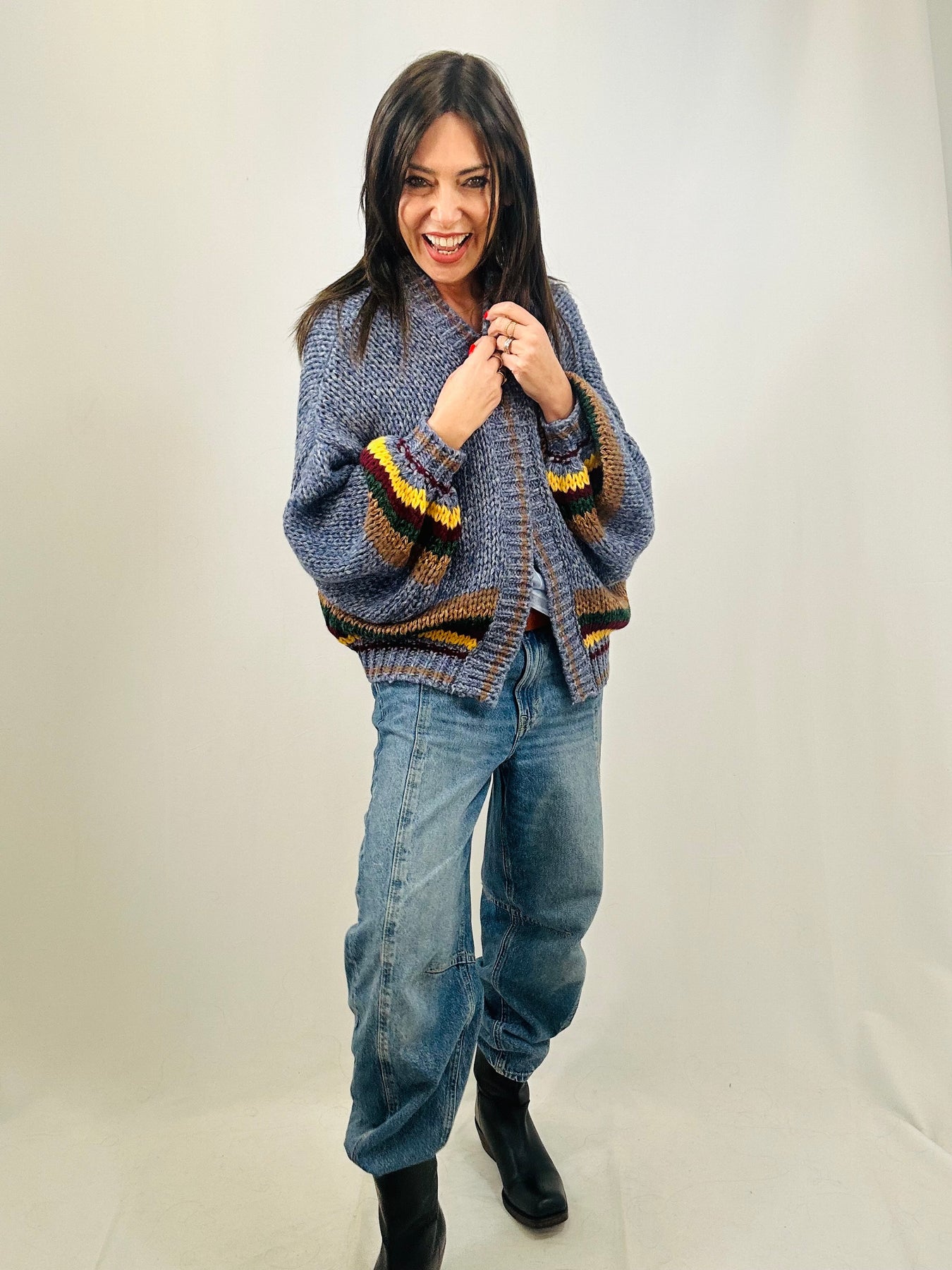 Wrap yourself in pure comfort with the Emma chunky shawl cardi. This gorgeous throw-on layer features a cosy chunky knit that's perfect for those moments when you want to feel effortlessly warm. The shawl-style cut drapes beautifully, while a fab stripe detail adds visual interest. Pair it with your favourite denim for an instantly chic, relaxed look that feels as good as it looks.