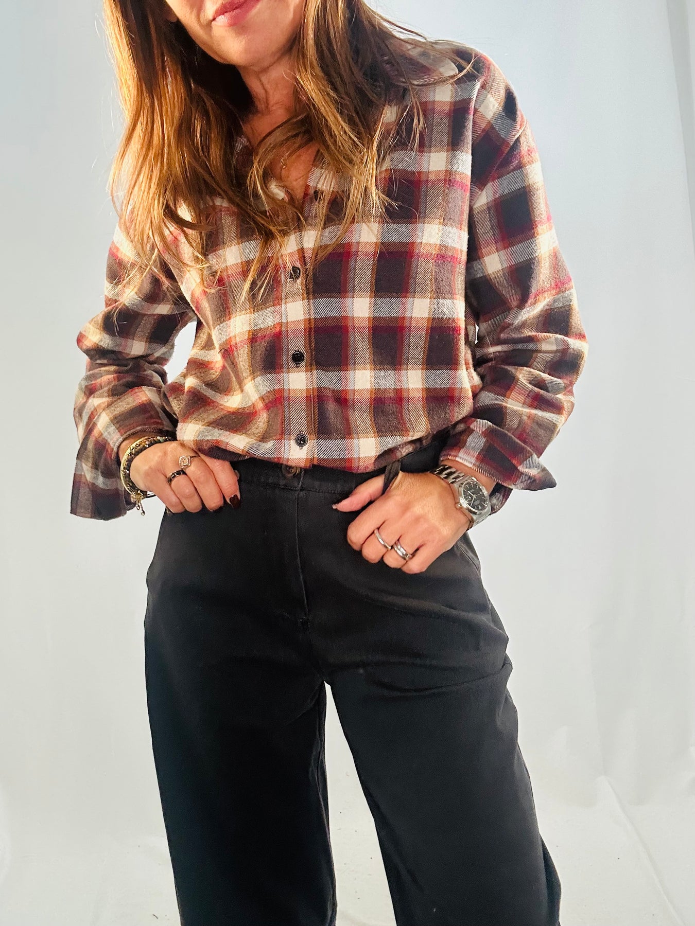 This brushed cotton shirt features a super cool and on trend lumberjack style check pattern. Made from high-quality materials, it offers both comfort and style. Perfect for any casual or outdoor occasion. Elevate your wardrobe with this must-have shirt.