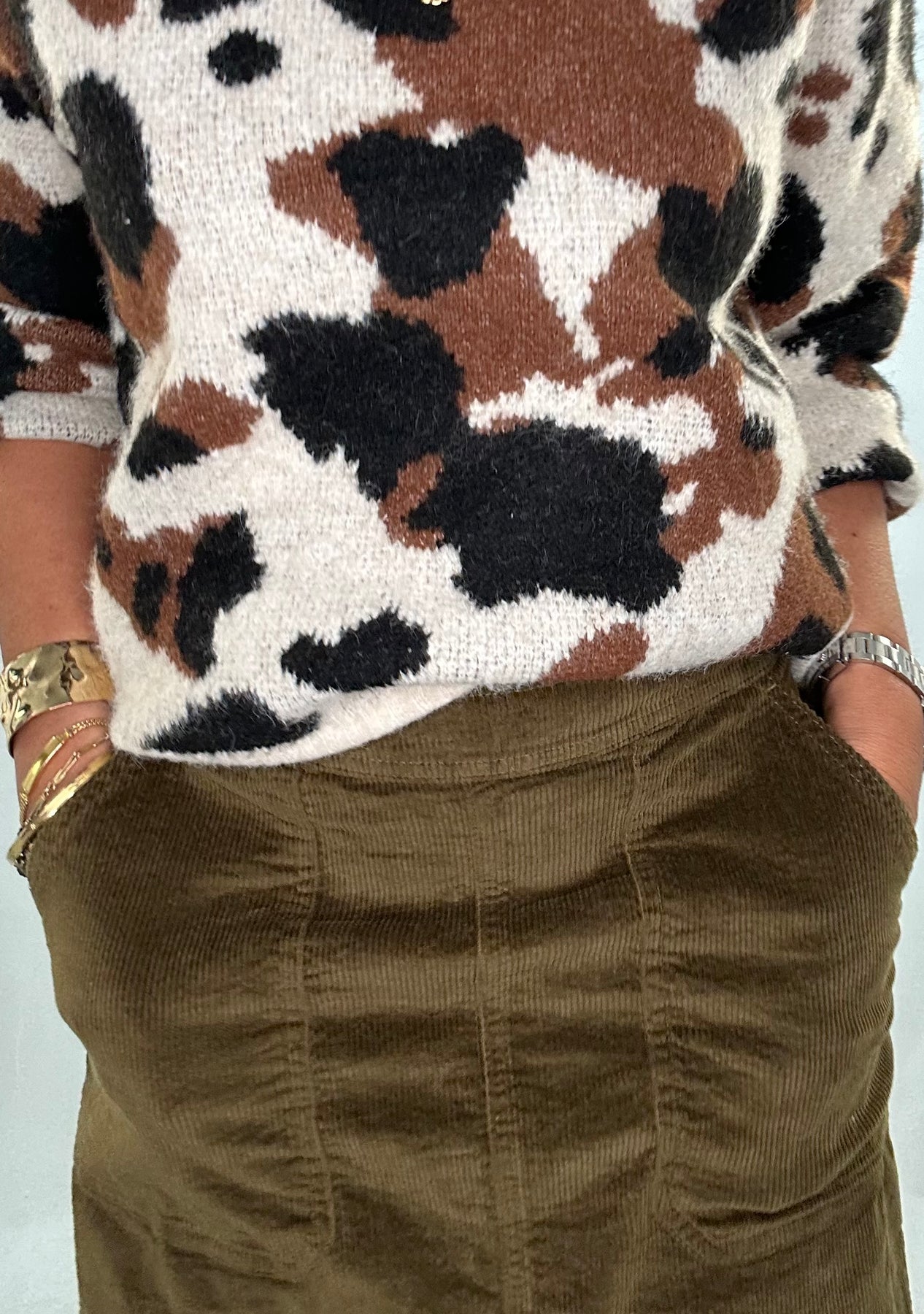 This smart cord skirt features a flattering slight A-line silhouette and a versatile midaxi length, perfect for both casual and polished looks. Equipped with practical front pockets, it combines style with function effortlessly. Elevate your wardrobe with this cool, comfortable piece that transitions seamlessly from day to night.