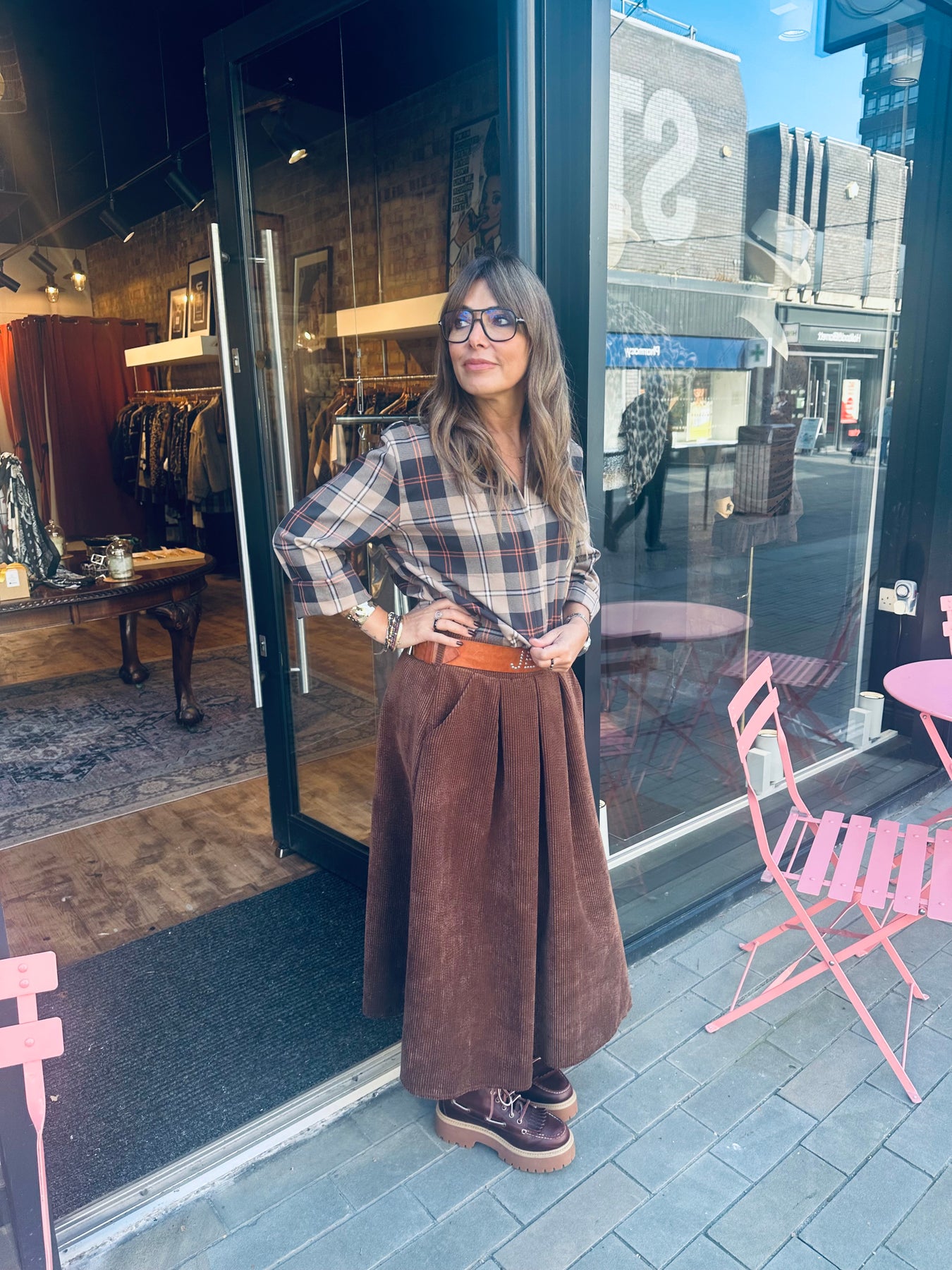 The Mira check shirt boasts a cool and on-trend style, perfect for fashion-forward individuals. Crafted with a timeless check pattern, this shirt is a versatile addition to any wardrobe. Stay effortlessly chic with this fashion staple.