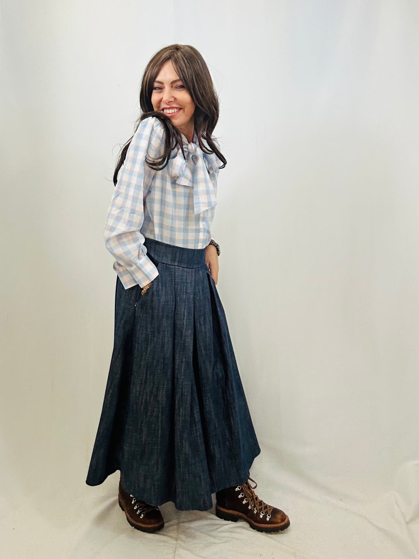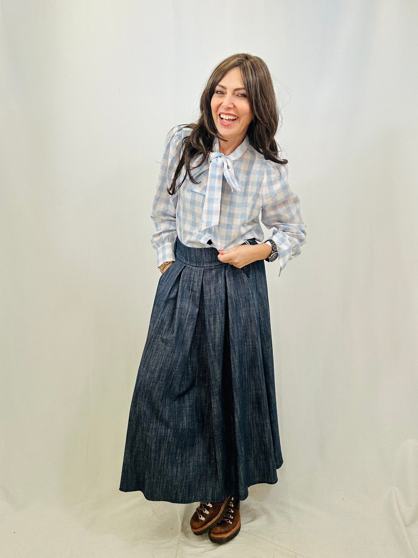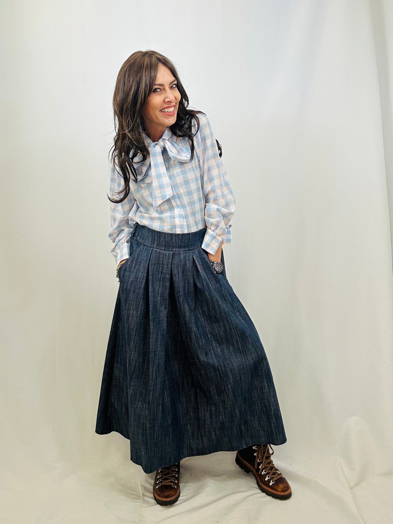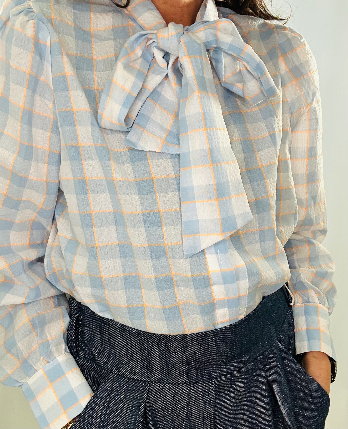 Meet your new go-to shirt—the Kinsley is bursting with charm. Its eye-catching check pattern in a stunning colour combination is impossible to resist, while the distinctive tie-neck detail and crisp collar add a dash of sophistication. Button up the front, roll those cuffs, and you've got a piece that's equal parts fun and fabulous. A wardrobe essential that brings joy to every wear.
