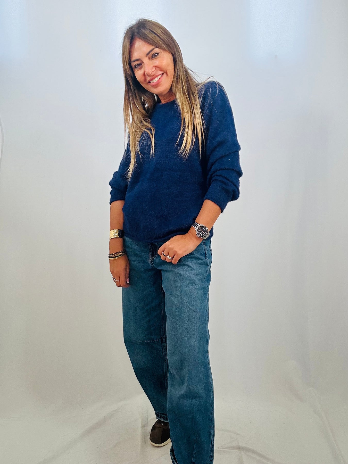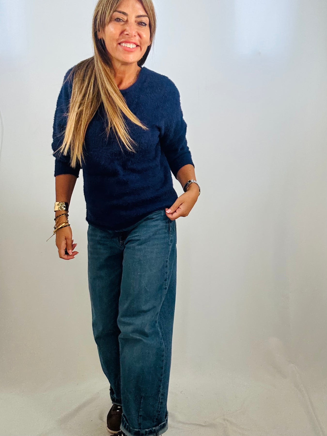Relaxed fit, true to size, long sleeves, super soft knit, round wide neckline on one side and v neckline with delicate buttons on the other, reversible.